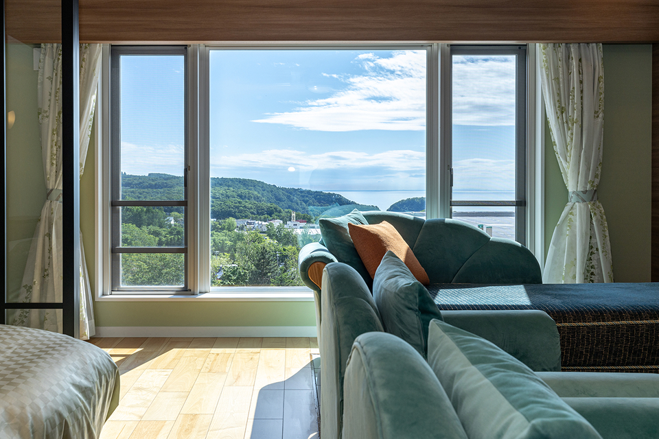 如果是在窗边设有工作空间的角豪华房间的话,工作的间隙也会用鄂霍次克的绝景来转换心情。