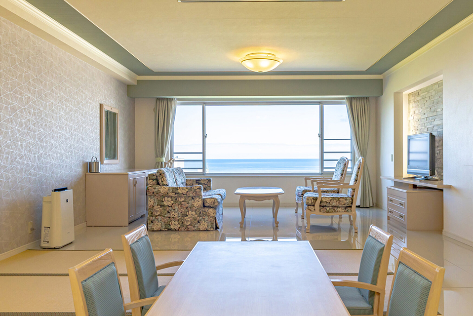 融合了和洋的现代客房,从情侣到家人、团体都能得到广泛的对应。这是一个最多可容纳9人的宽敞空间,最适合跨世代旅行。